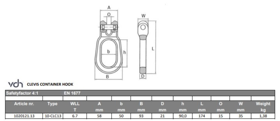 VDH Containerhaak - Grade 100 - 6,7 ton - lengte 13 mm