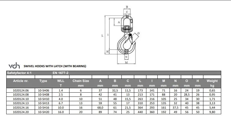 De gelagerde VDH Wartel Klephaak – Grade 100 is een betrouwbare keuze voor professioneel hijswerk waarbij veiligheid en flexibiliteit centraal staan. Deze sterke klephaak is ontworpen om zware lasten veilig te hijsen en te draaien, zonder verlies van stabiliteit of controle.