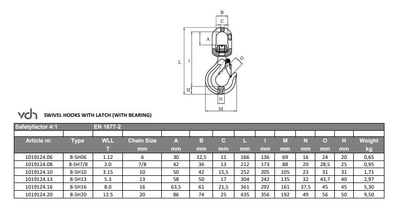 De gelagerde VDH wartelklephaak is een betrouwbare keuze voor hijstoepassingen waarbij veiligheid en flexibiliteit essentieel zijn. Deze hoogwaardige haak, vervaardigd uit grade 80 staal, is ontworpen voor het veilig hijsen en draaien van zware lasten zonder verlies van stabiliteit. Daarmee is hij uitermate geschikt voor professioneel gebruik in diverse sectoren.